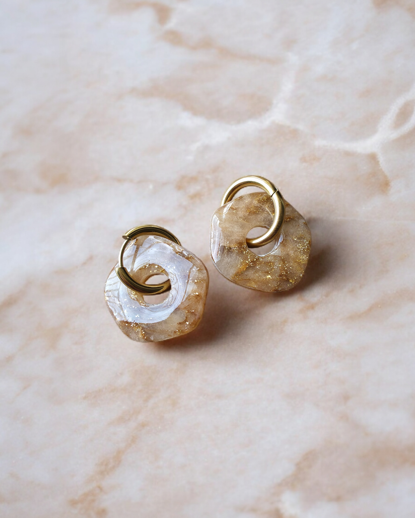Cada par es único: al ser artesanales, el veteado del mármol varía ligeramente, haciendo tu joya exclusiva.