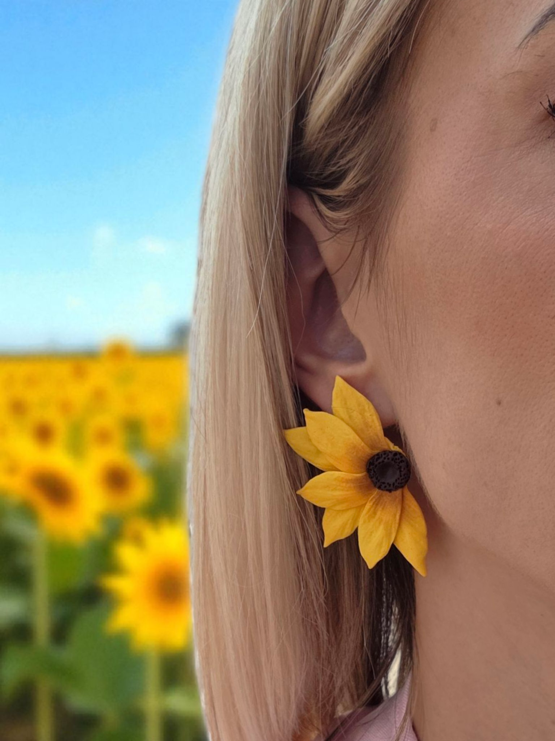 Ilumina tu look con estos pendientes artesanales con forma de girasol, elaborados en arcilla polimérica y pensados para destacar. Su diseño realista y vibrante los convierte en el accesorio perfecto para quienes aman la naturaleza y las flores.